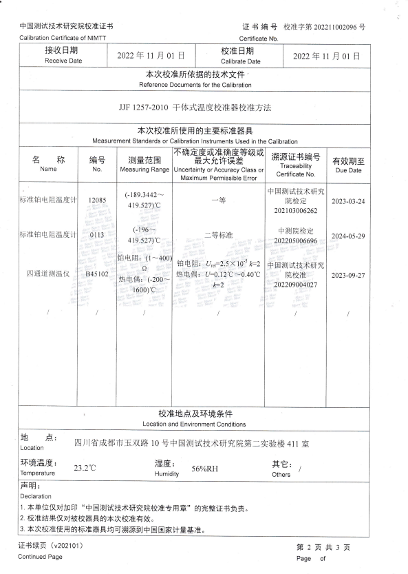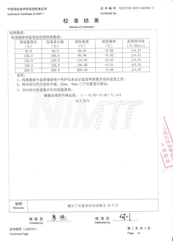 海安橡膠集團股份有限公司 干體爐 校準證書 2022-11-11 本文被閱讀 12564 次