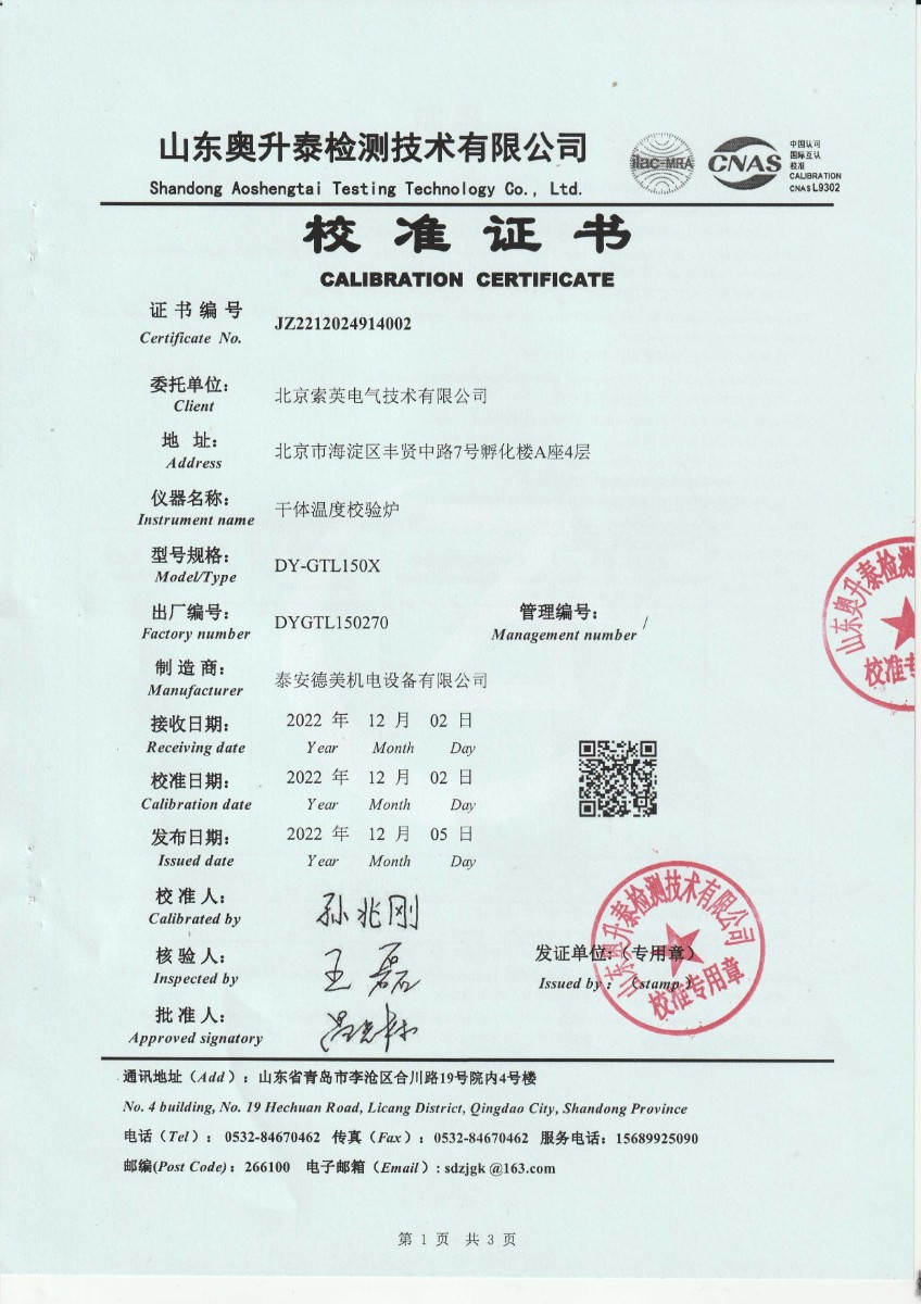 北京索英電氣技術(shù)有限公司 干體溫度校驗(yàn)爐 2022-12-8 本文被閱讀 14300 次
