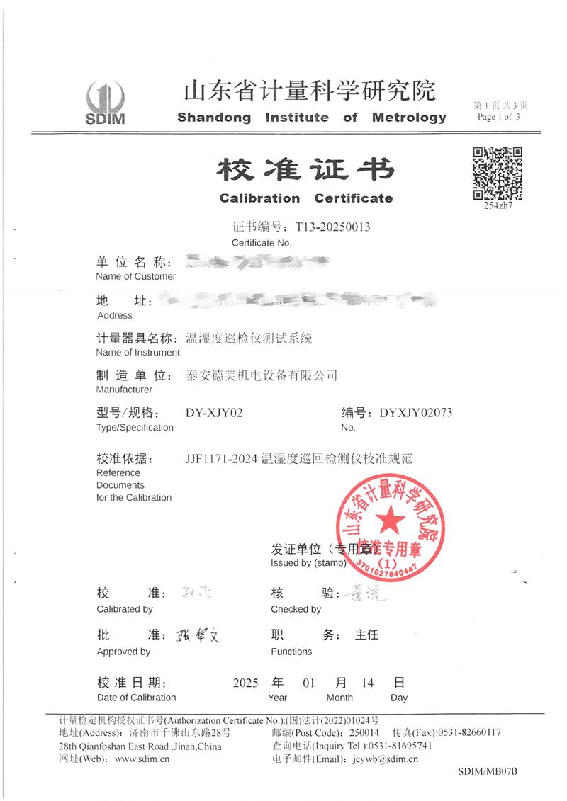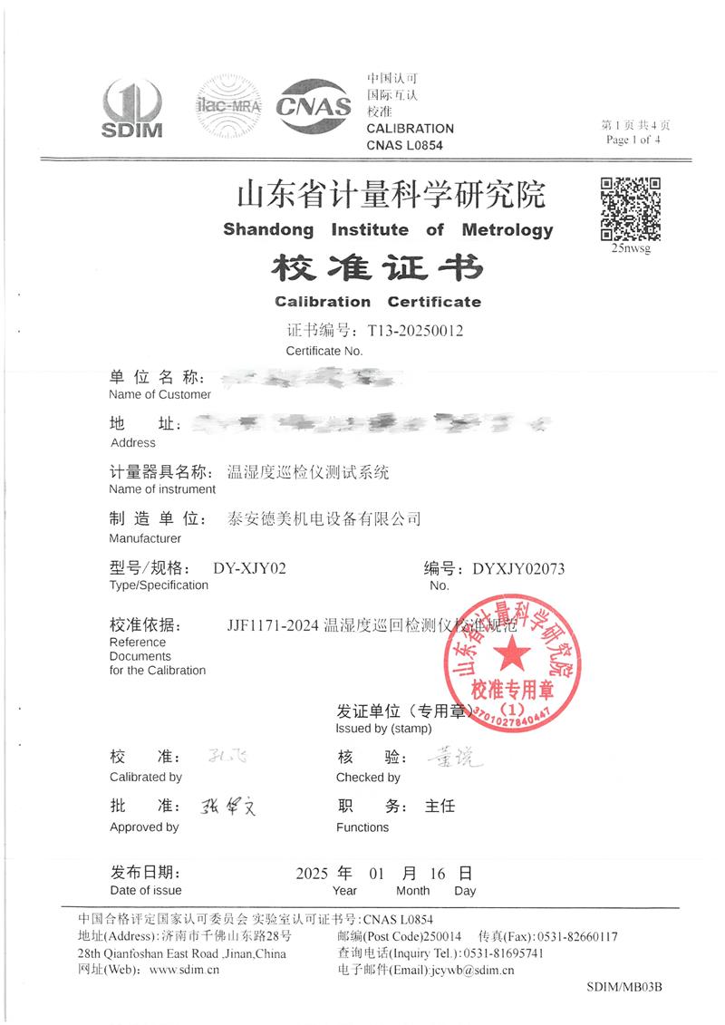 | 上一條:低溫浴式面源黑體爐(-50-80℃)校準(zhǔn)證書 | 下一條:濕度發(fā)生器-校準(zhǔn)證書 |