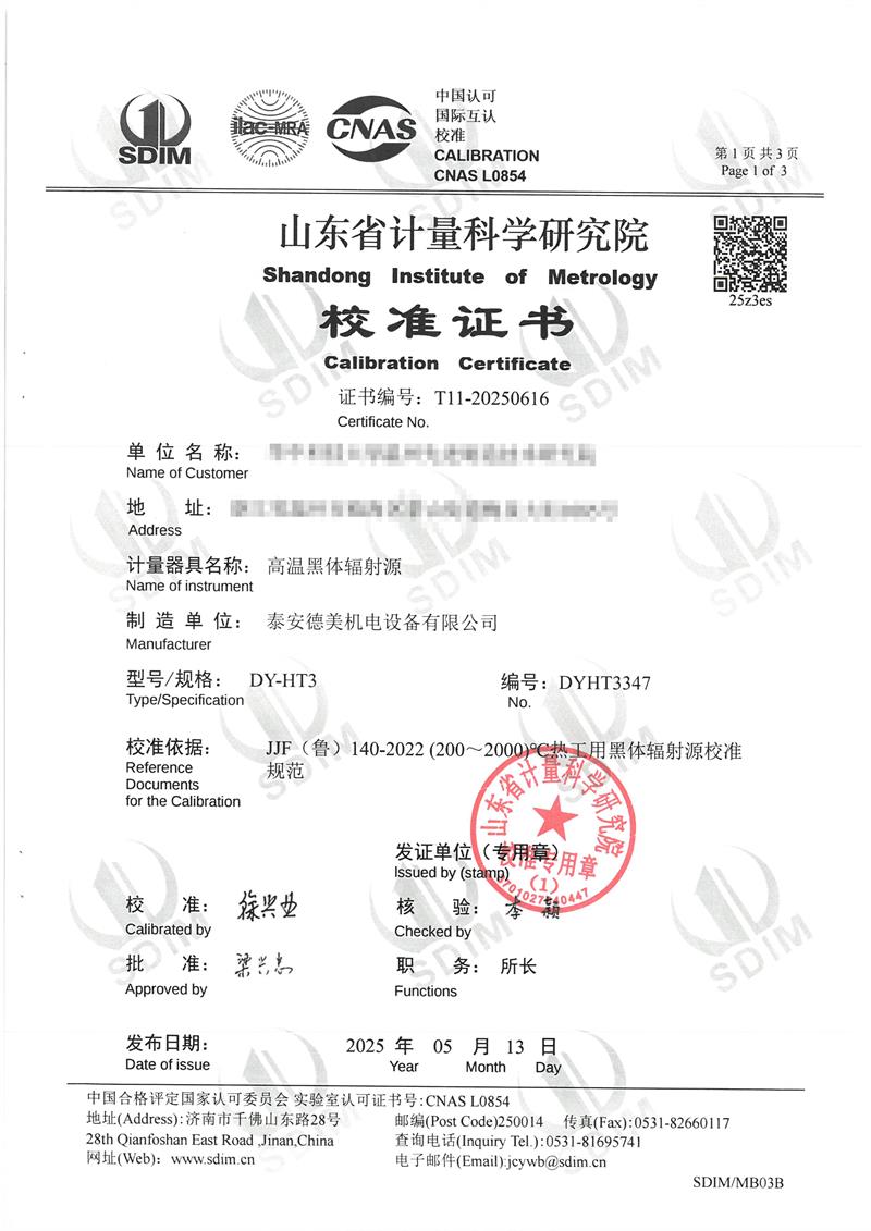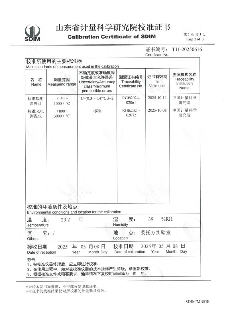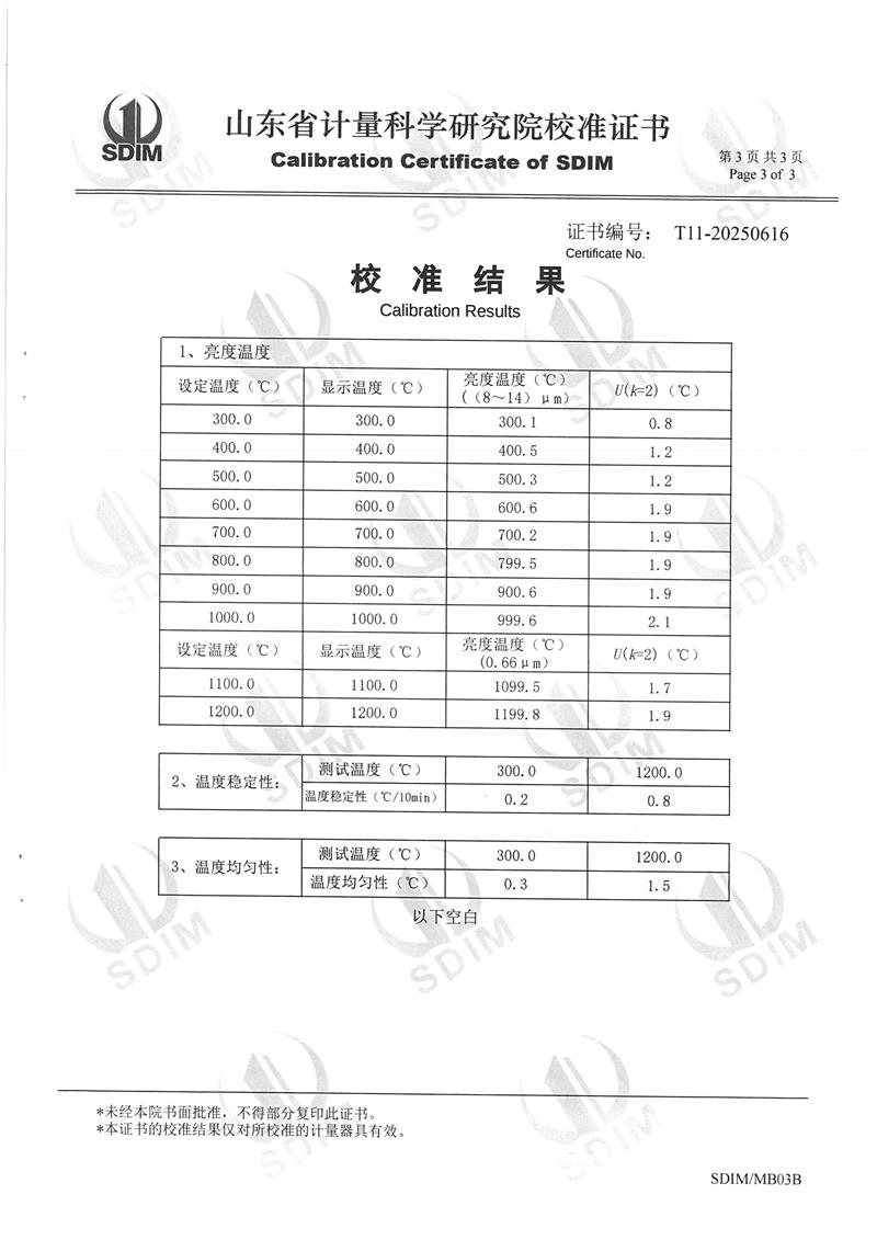 高溫黑體爐(300~1200℃)校準(zhǔn)證書 2025-5-16 本文被閱讀 4663 次