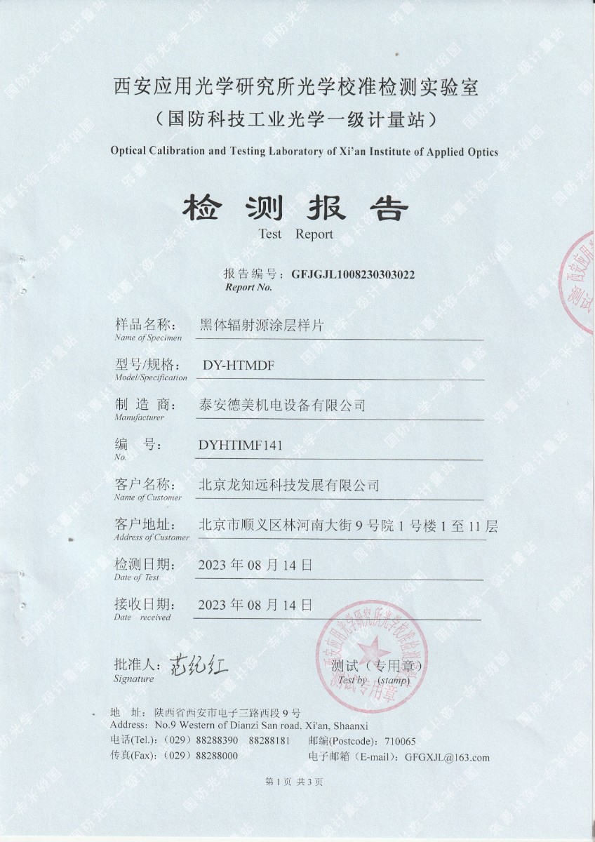 | 上一條:北京龍知遠(yuǎn)科技發(fā)展有限公司-黑體輻射源涂層樣片DYHT1MF140檢測(cè)報(bào)告 | 下一條:濕度發(fā)生器-校準(zhǔn)證書 |