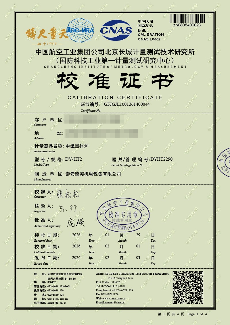 中溫黑體爐-校準證書 2026-2-11 本文被閱讀 1119 次