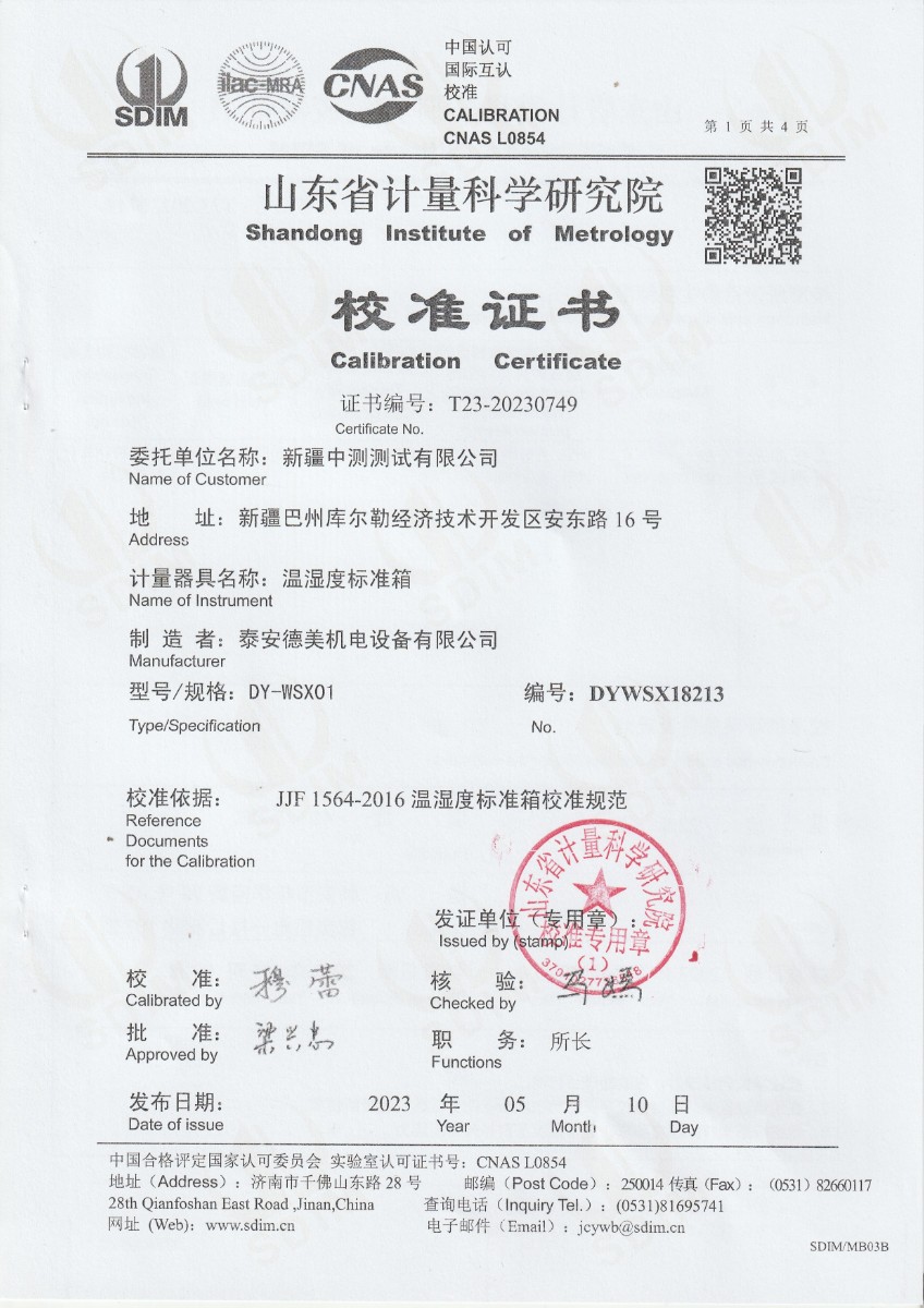 | 上一條:越南晶科能源實(shí)業(yè)有限責(zé)任公司 溫濕度標(biāo)準(zhǔn)箱 校準(zhǔn)證書 | 下一條:濕度發(fā)生器-校準(zhǔn)證書 |