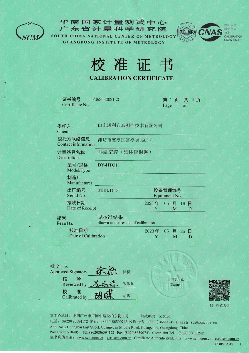 | 上一條:山東凱利布森測控技術(shù)有限公司 額溫空腔(黑體輻射源) 校準證書 | 下一條:DY-HT2M-C高溫面源黑體爐(100mm) |