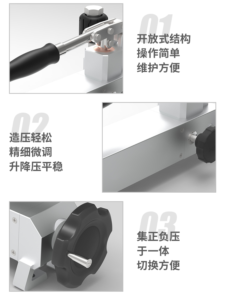 l 杠桿式加壓,超大范圍加減壓,使升降壓過程更穩(wěn)定