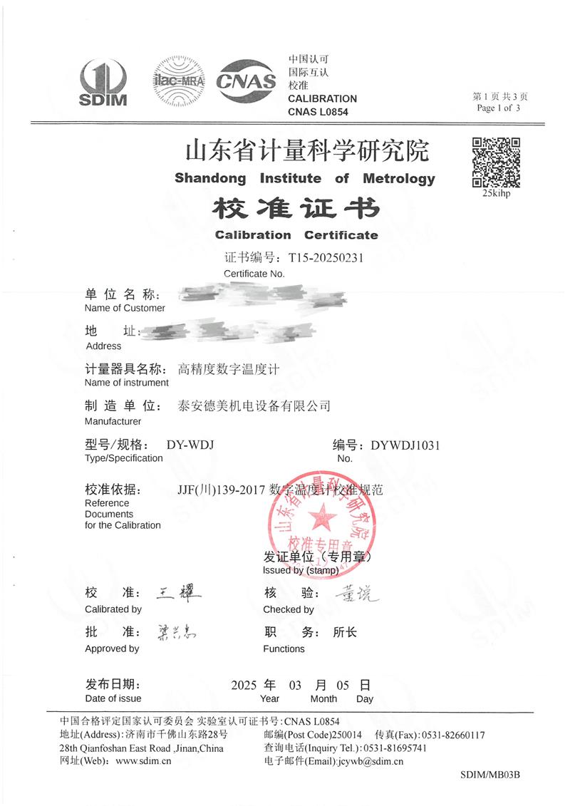 高精度數(shù)字溫度計校準證書 2025-3-8 本文被閱讀 4315 次