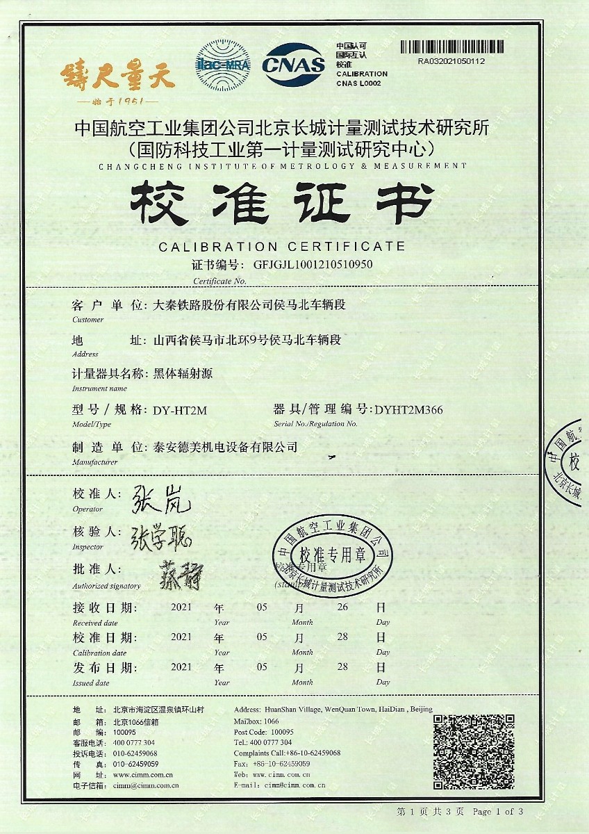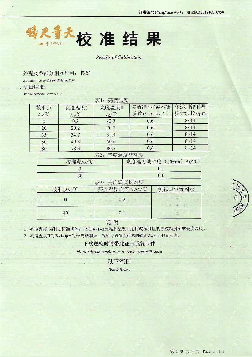 | 上一條:哈爾濱三聯(lián)藥業(yè)股份有限公司-標準通風(fēng)干濕表 | 下一條:面源黑體爐-校準證書 |