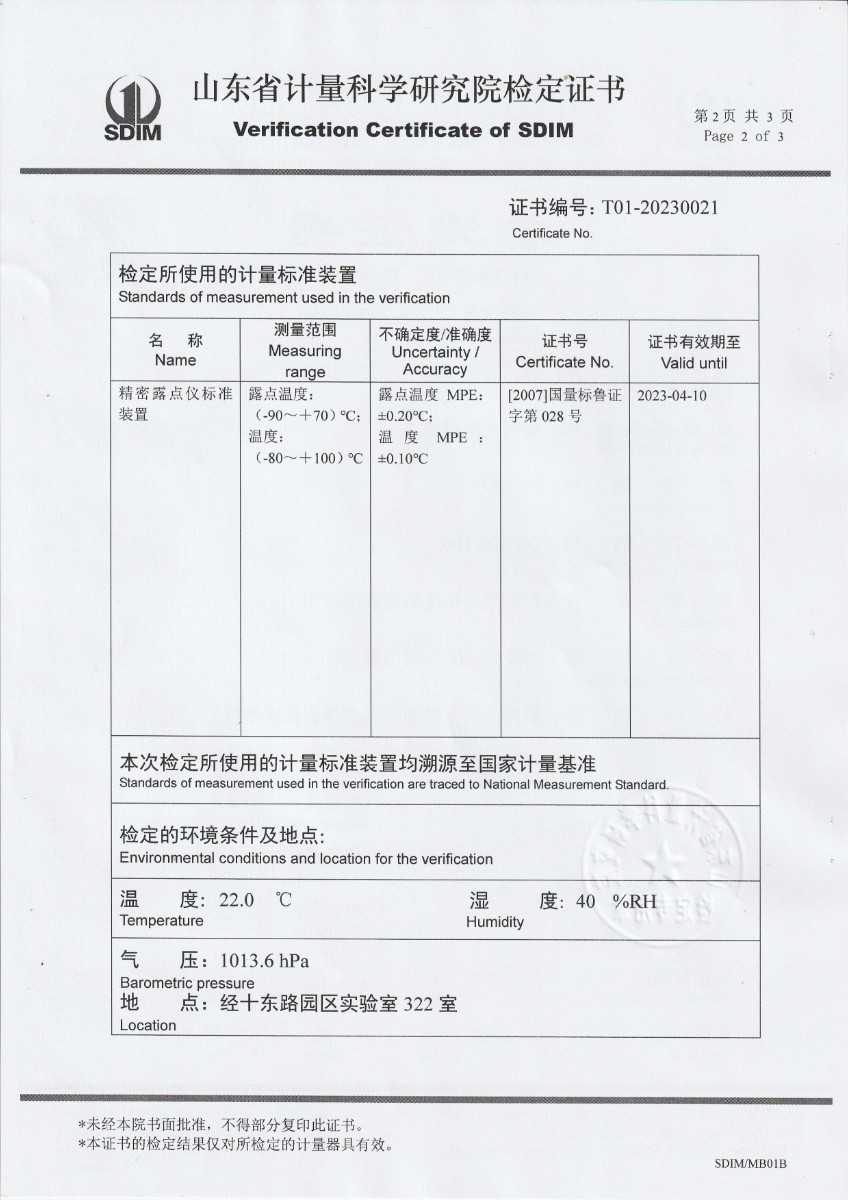 晶科能源(海寧)有限公司 冷鏡式露點儀 檢定證書 2023-2-25 本文被閱讀 14286 次