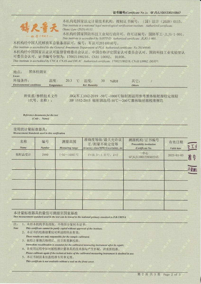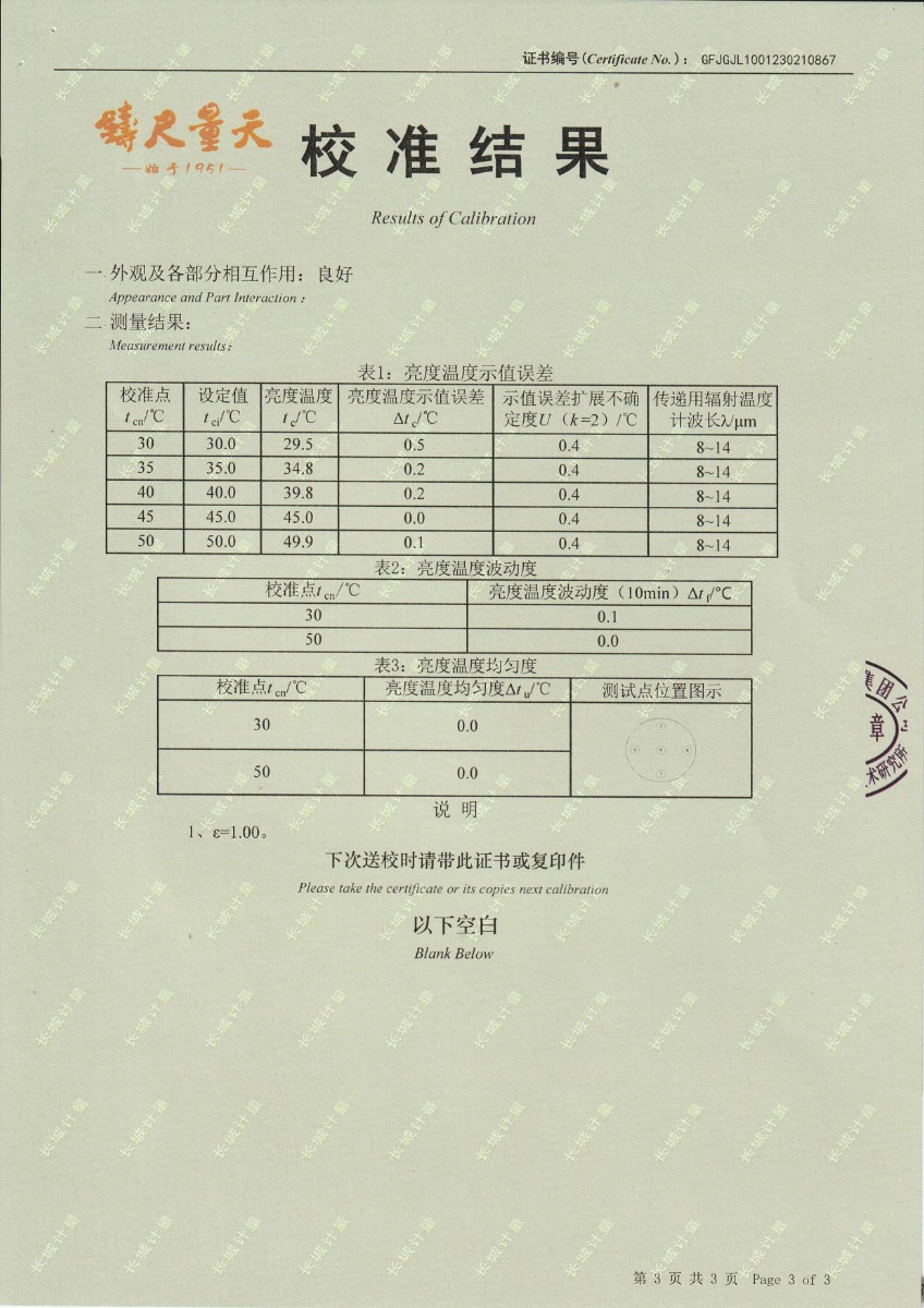 | 上一條:江蘇省產(chǎn)品質(zhì)量監(jiān)督檢驗(yàn)研究院 黑體輻射源 校準(zhǔn)證書 | 下一條:DY-HT2M-C高溫面源黑體爐(100mm) |