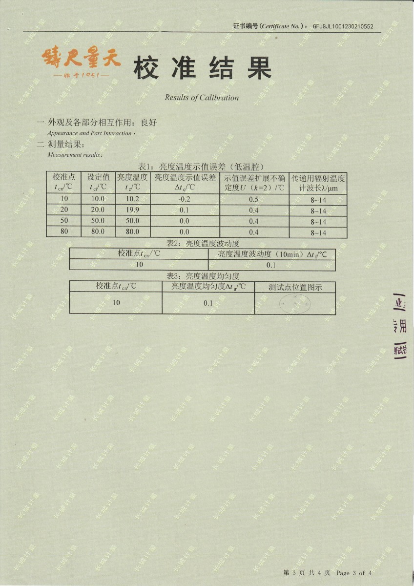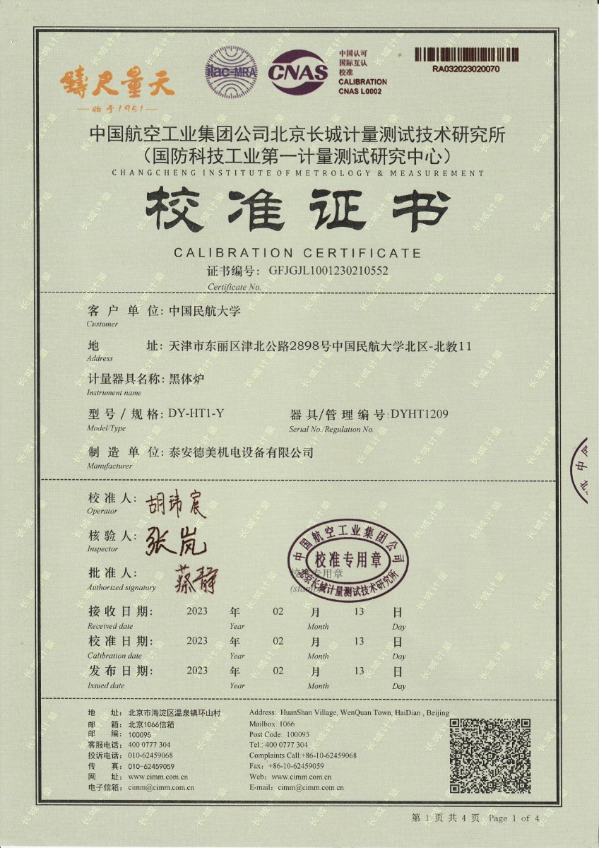 | 上一條:煙臺信泰檢測技術(shù)服務(wù)有限公司 黑體爐 校準(zhǔn)證書 | 下一條:DY-HT2M-C高溫面源黑體爐(100mm) |