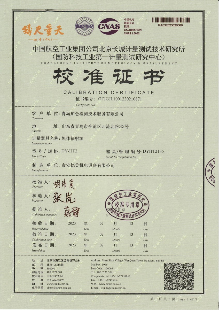 | 上一條:中國民航大學(xué) 黑體爐 校準(zhǔn)證書 | 下一條:DY-HT2M-C高溫面源黑體爐(100mm) |