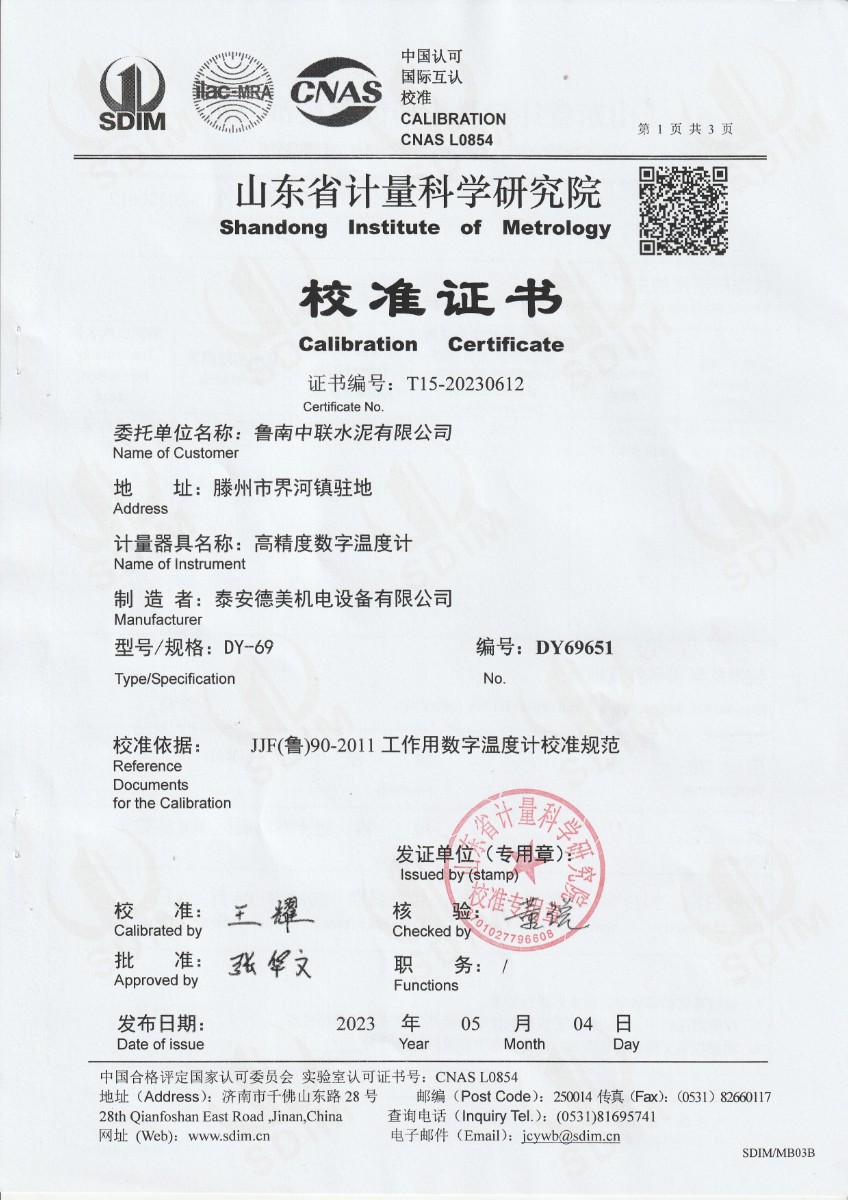 | 上一條:越南晶科能源實業(yè)有限責任公司 面源黑體爐 校準證書 | 下一條:濕度發(fā)生器-校準證書 |