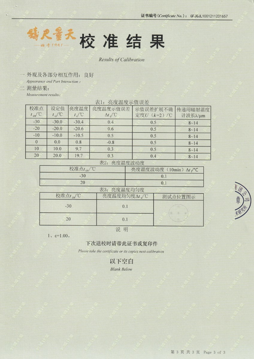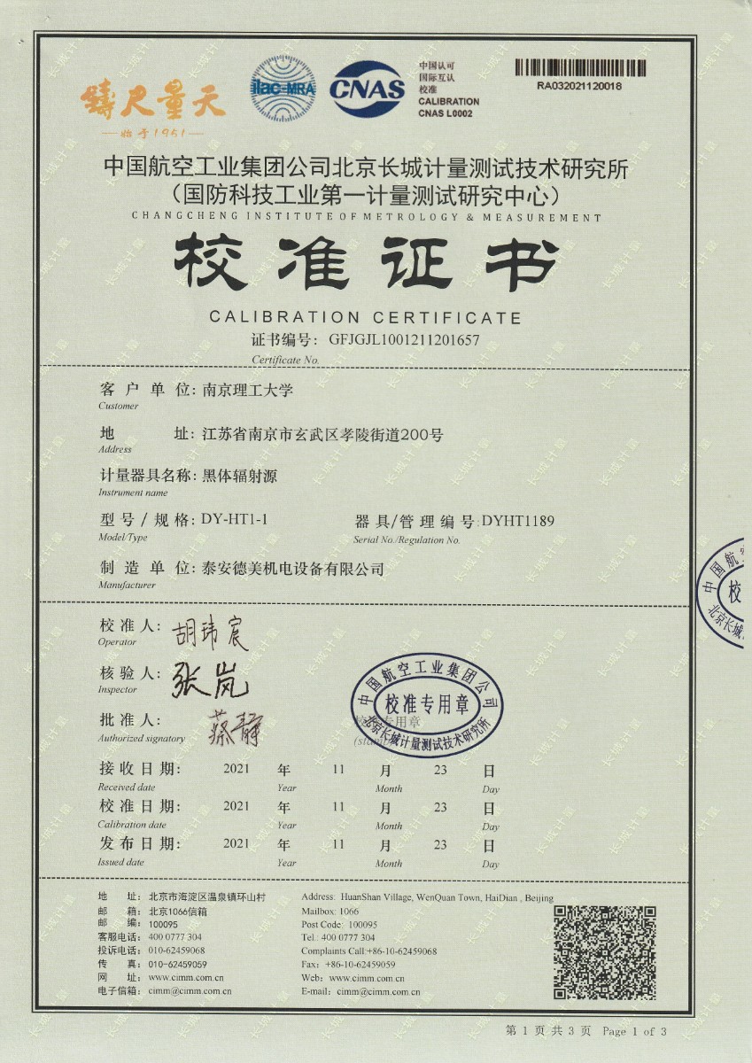 | 上一條:南京理工大學(xué)-黑體輻射源校準(zhǔn)證書25℃ | 下一條:熱工自動(dòng)檢定系統(tǒng)-校準(zhǔn)證書 |
