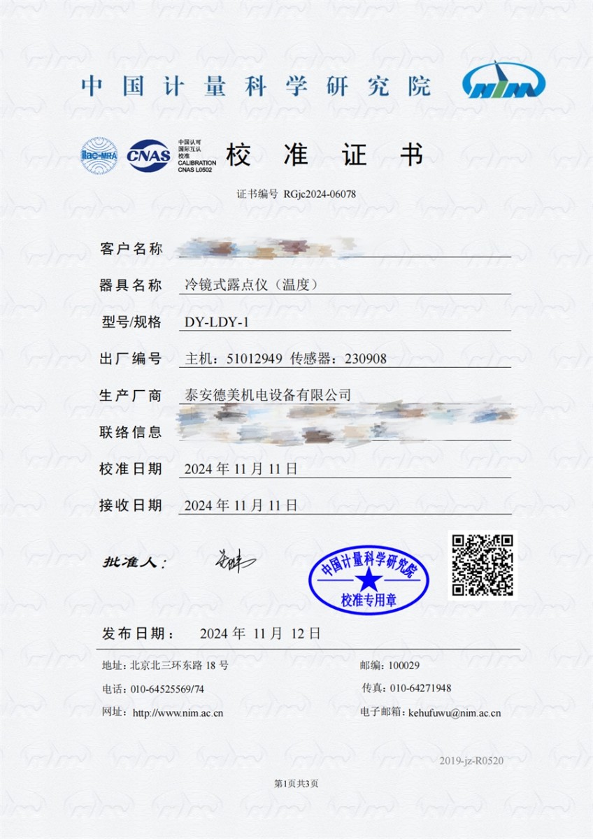 冷鏡式露點儀校準(zhǔn)證書 2024-11-21 本文被閱讀 8089 次