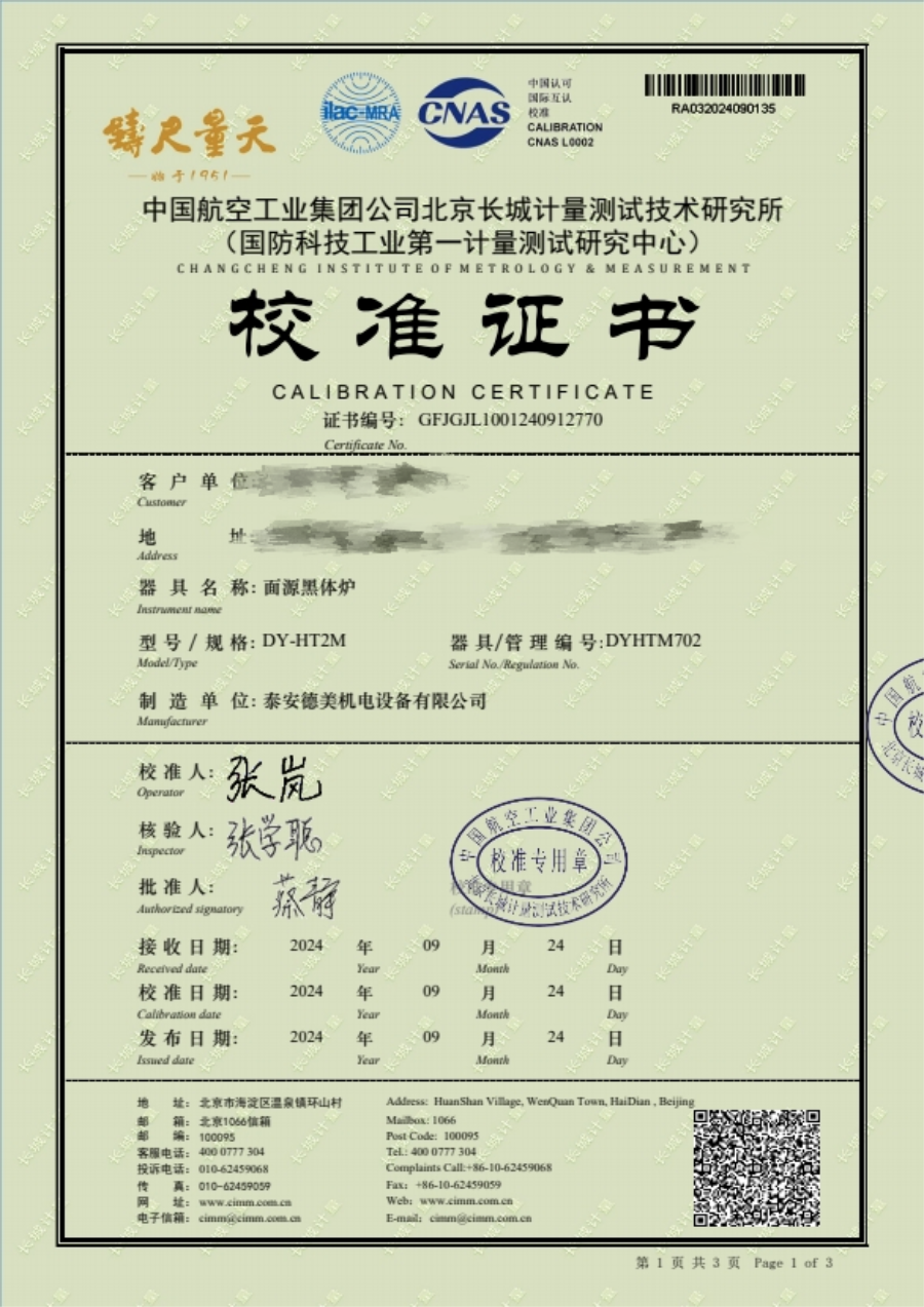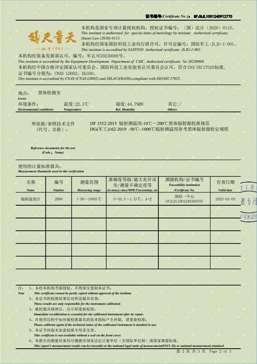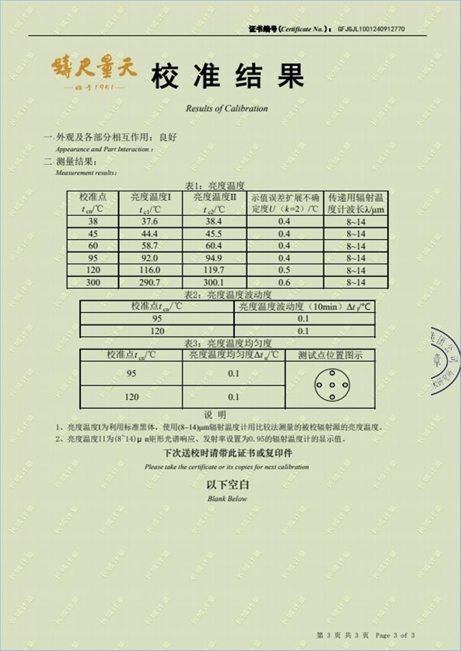 面源黑體爐校準(zhǔn)證書 2024-11-27 本文被閱讀 8007 次